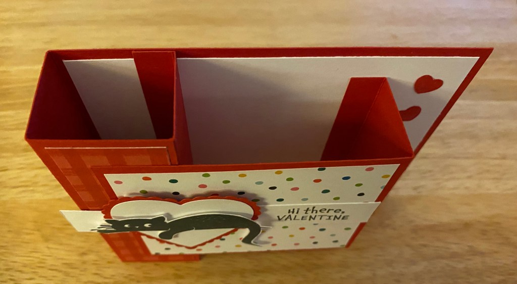 Real Red #102482 – 4 ¼ x 10 – score at 5 ½ then flip and score at ½, 1 ¾ and 3 ¼; 5 ½ x 3 ¼ score at ½ and 1 ¾ and scraps for scalloped heart and hearts from dog builder punch