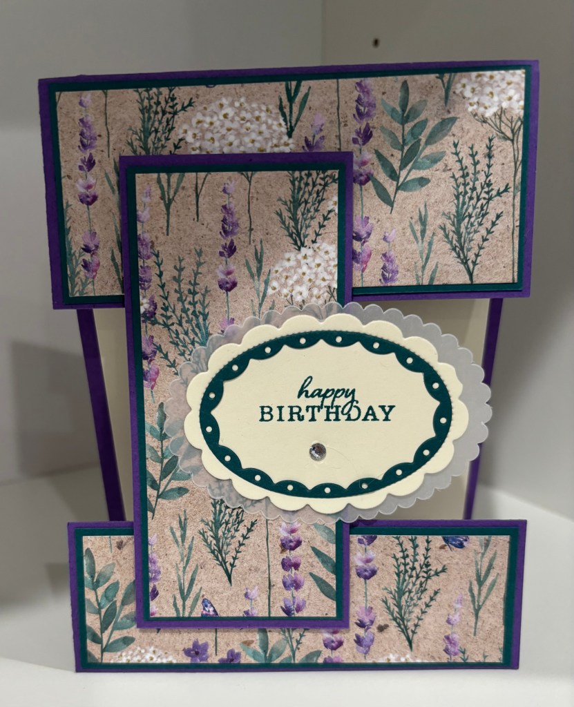 After seeing a few of these Split Front cards on Pinterest and Facebook, I knew I had to try it using the Perennial Lavender Designer Series Paper. Try this with any of your designer Series Paper.