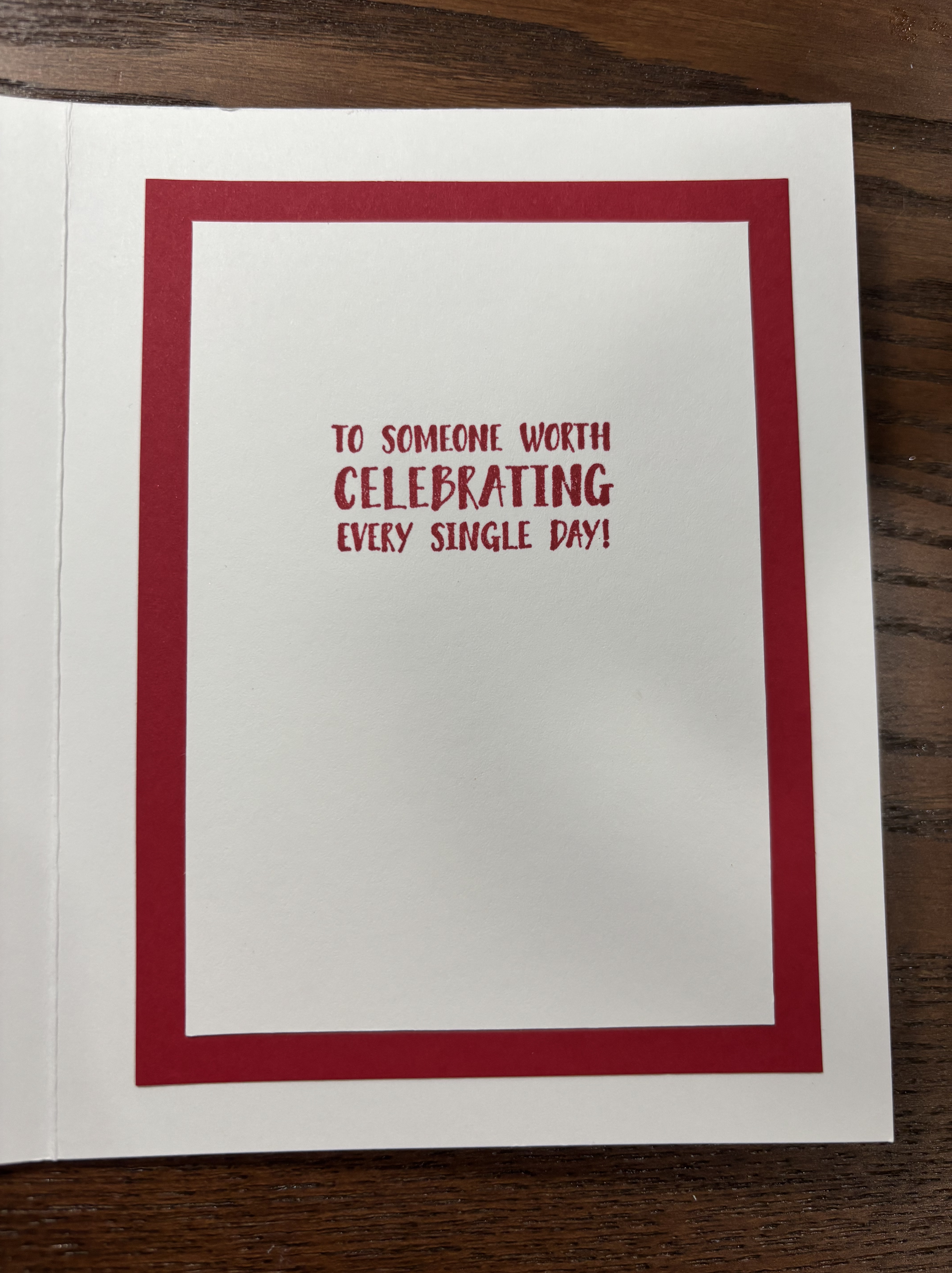 - Stamp the Basic White 4 ¼ x 3 with ‘To Someone Worth Celebrating Every Single Day!