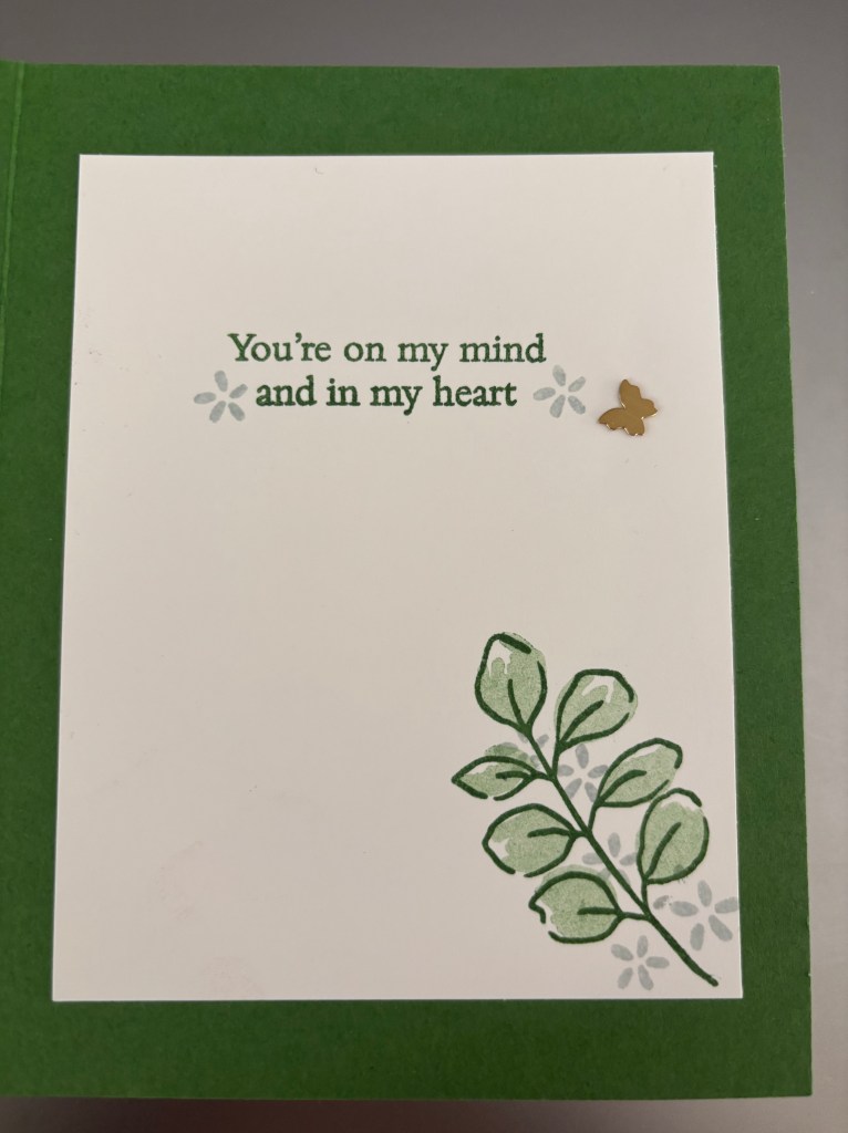 This ‘thinking of you card’ uses the products from the Greenery Lane items from the January – April 2026 Stampin’ UP! Catalog along with other products from Stampin’ UP!