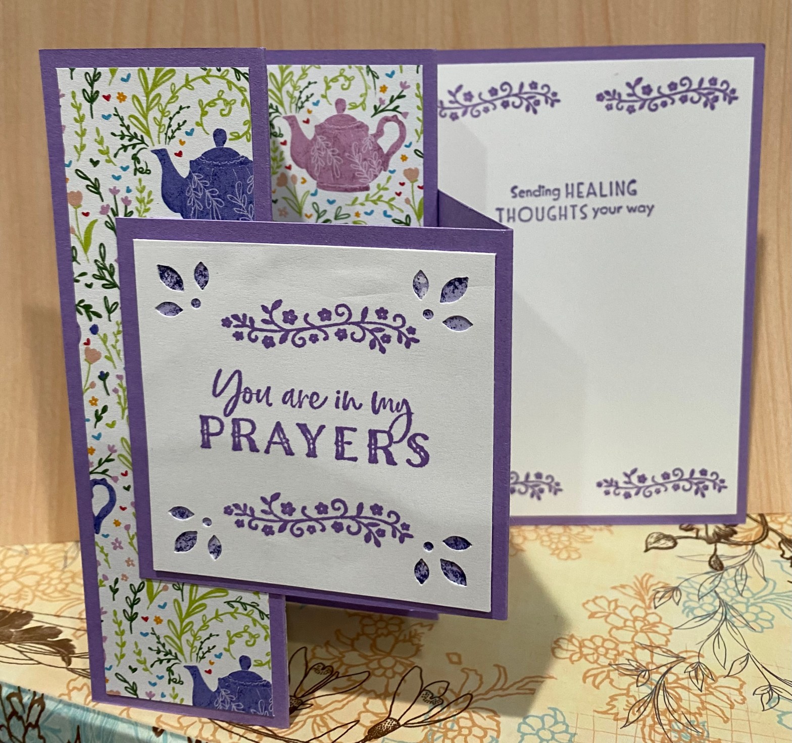 Tea Boutique is a wonderful Designer Series Paper and can be used for any occassion. Here I've paired Highland Heather cardstock and the Inspired Thoughts and Hope & Prayer stamp sets. Products used for this card:Highland Heather Cardstock #146986 - 11 x 5 1/2 scored at 1 3/4, 3 1/2, 5 1/4 and 7, 3Continue reading "Fun Fold with Tea Boutique"