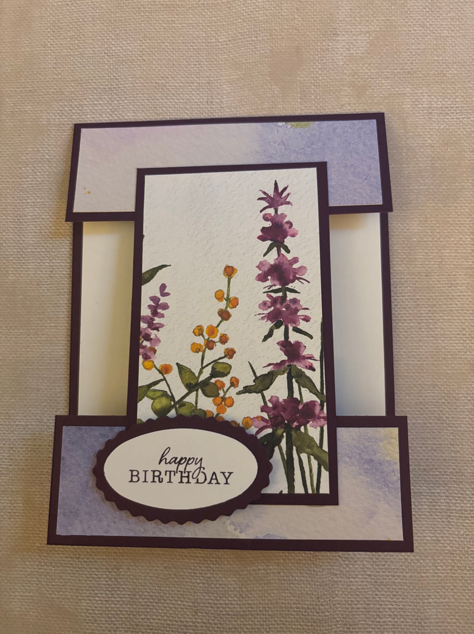Card MeasurementsCard Base – 11 x 4-1/4. Score at 5-1/2. On one side of the fold cut 1-1/2 inches off, then cut 2-1/2 inches off. You will use these for the front bottom and center of the card.First Layer – use coordinating card stock to match your Card Base and Designer Series Paper (DSP) 2ContinueContinue reading “Split Front Card”